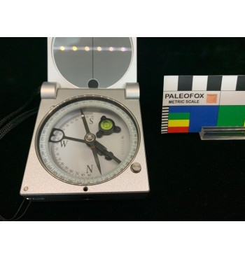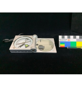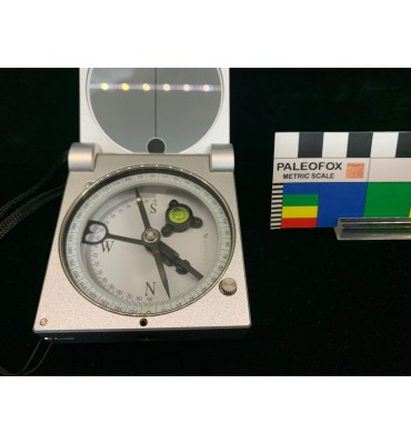 Completely in silver aluminum for geological survey and surveying with millimeter scale on the mirror edge.
