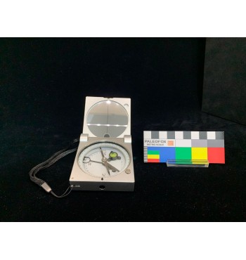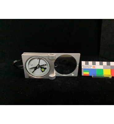Like the "Freiberger" it facilitates the reading of dip and strike in one operation by a vertical circle at the lid hinge.