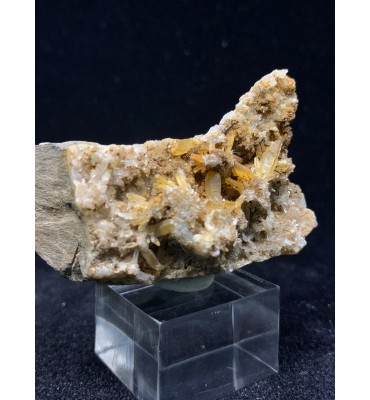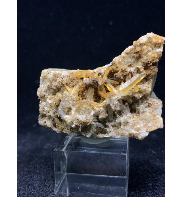 Quartz on matrix specimen from the renowned locality of Procchio, Isola d'Elba, one of Italy's most appreciated mineralogical sites. The specimen features numerous elongated prismatic quartz crystals with a characteristic yellow-amber/golden coloration, due to the presence of ferruginous inclusions typical of this locality.