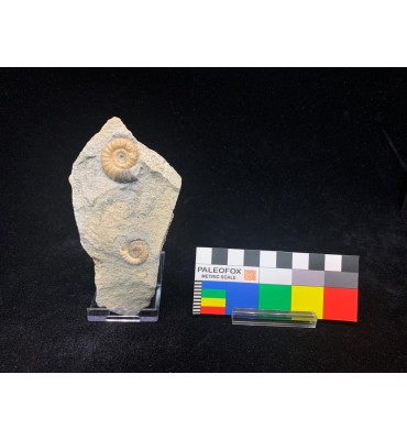 Promicroceras planicosta (Sowerby 1814) lastra con 2 ammoniti + supporto