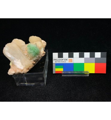 Dati mineralogici: Apofillite-(KF): sistema tetragonale · durezza Mohs 4,5–5 · lucentezza vitrea/madreperlacea · colore verde acqua Stilbite: sistema monoclino · durezza Mohs 3,5–4 · lucentezza vitrea · colore giallo-crema dorato