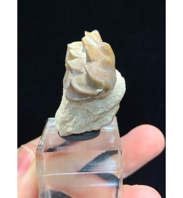 Fossile accompagnato da etichetta e scatolina in plastica